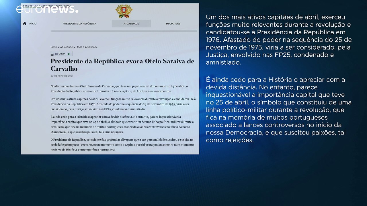 Jul 25, 2021 · morreu otelo saraiva de carvalho, o capitão de abril com o 'coração junto da boca' capitão de abril, de 84 anos, estava internado no hospital das forças armadas.